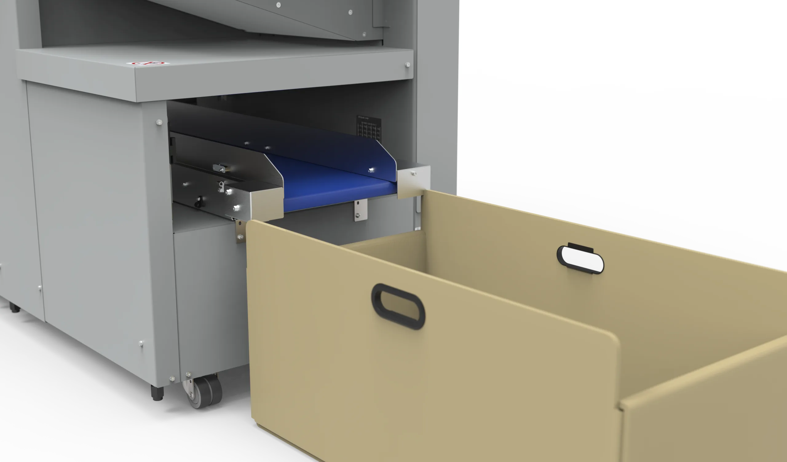 A combinação de empilhadores dois em um da Morgana DigiFold Ultra permite alternar entre trabalhos dobrados e não dobrados a partir da interface do usuário, sem a necessidade de reconfigurar a máquina. Trabalhos com corte de sangria total e não dobrados sairão no empilhador inferior para folhas não dobradas.